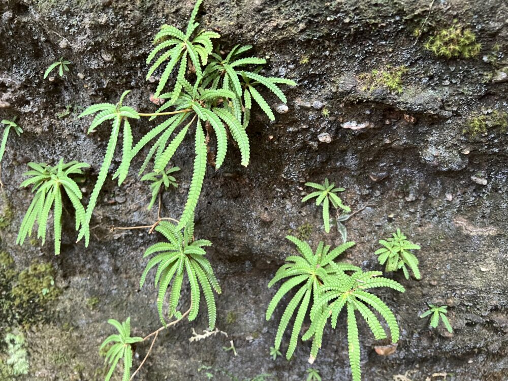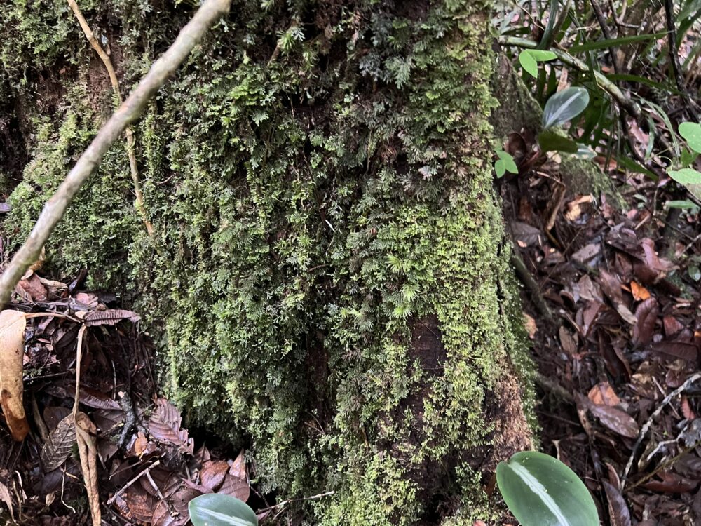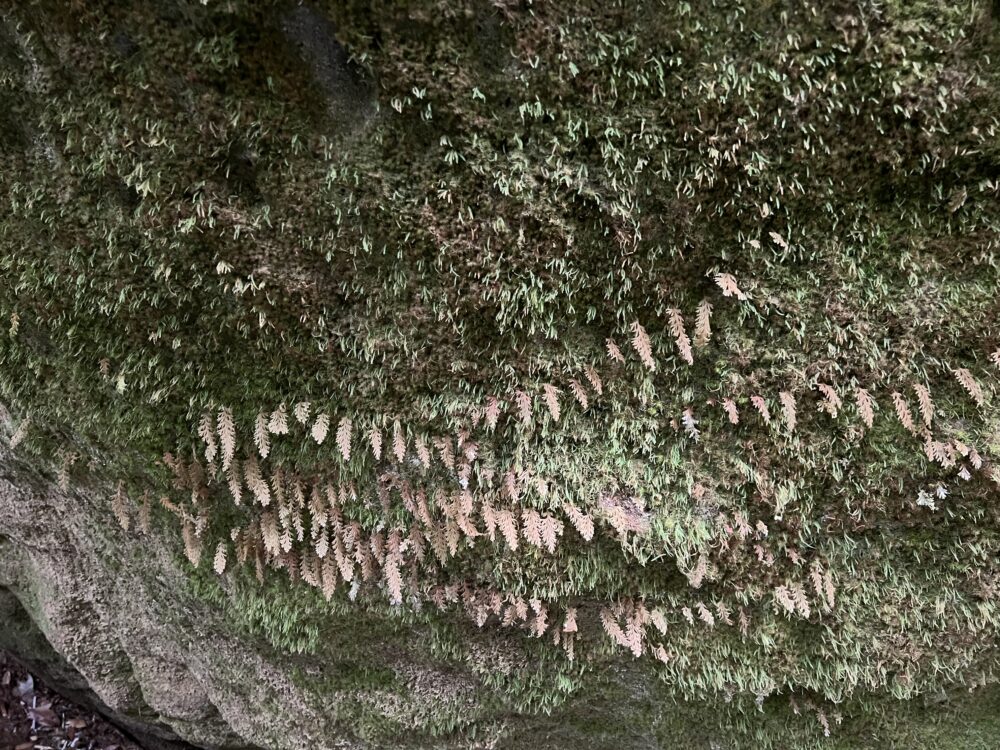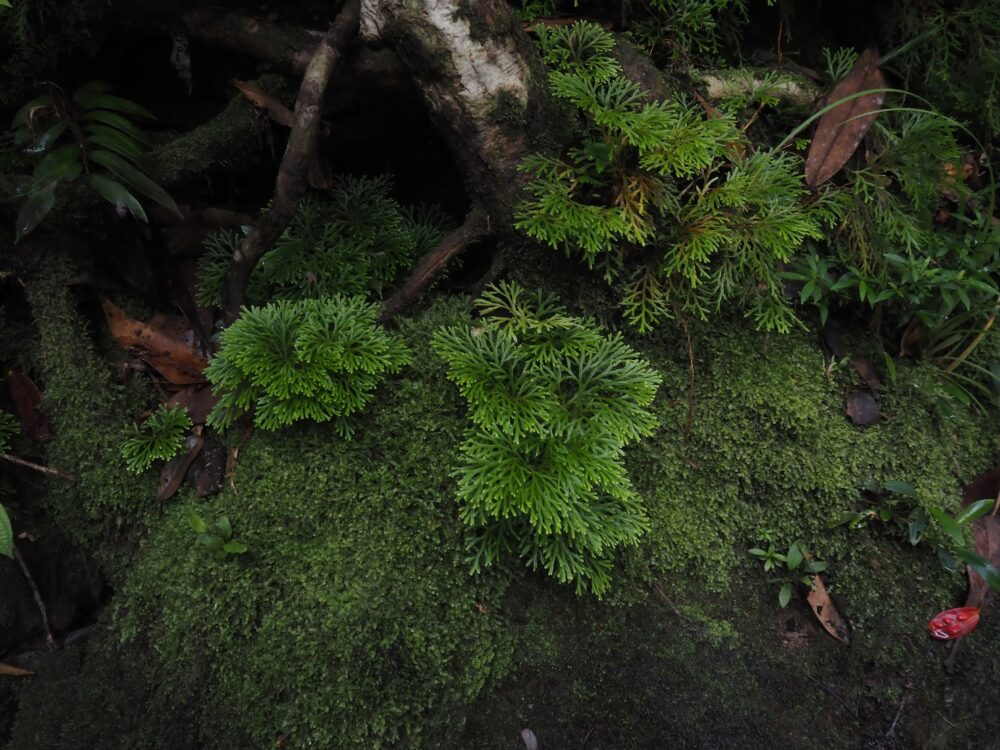 さらに、その上には別種のコケシノブがはっきりとした境界線を敷くように分布。数十cm〜数mの差で世界が切り替わる光景は現地で直接見るべきポイントですね。