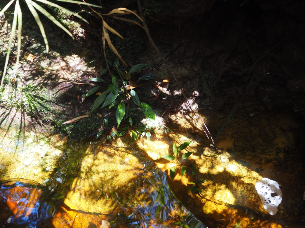 そして渓流沿いは栄養の流れも独特です。上流から運ばれてきた細かい有機物や泥が溜まる場所では、薄い土でも植物の密度が急に上がることがあります。つまり各微生息域がモザイク状で、その境界線がそのまま植生の境界線になっています。