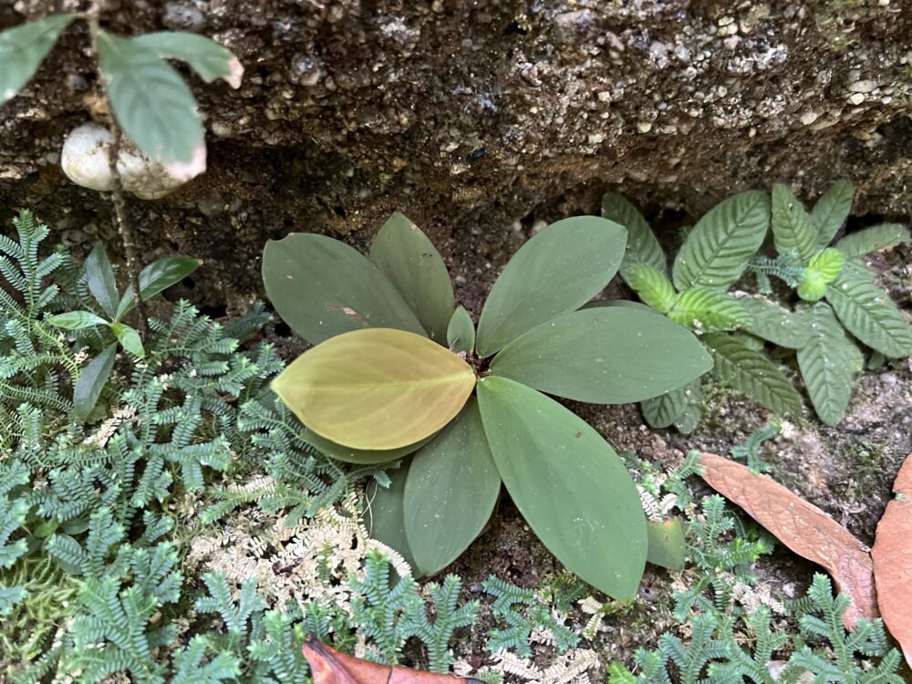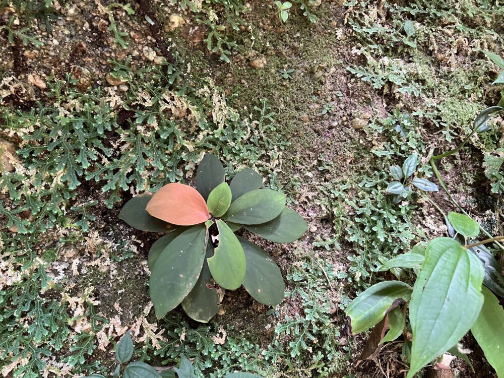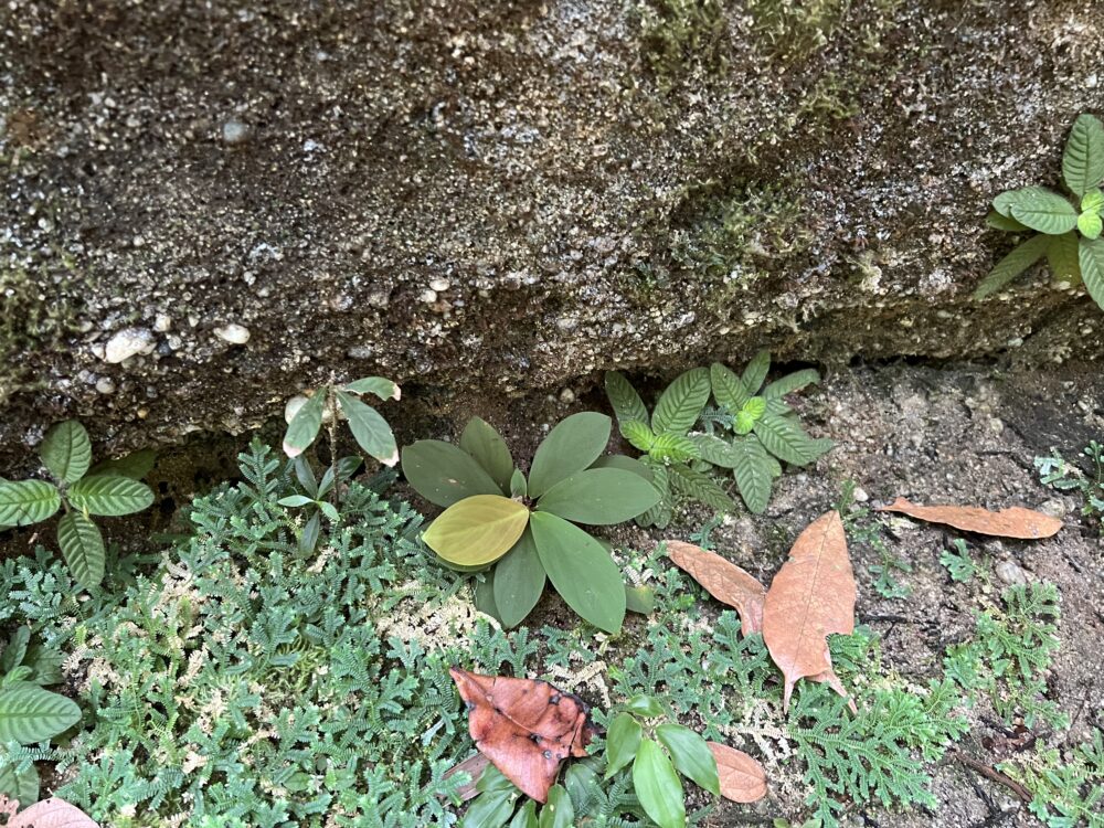 岩盤に自生しているけど活着しているわけではなく、表面の苔や砂に浅く根を張っているので、そこに乗っているというような感じ。