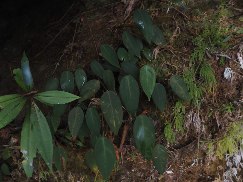 歩き始めて3日目に断崖絶壁の小さな滝の横で発見した種類。